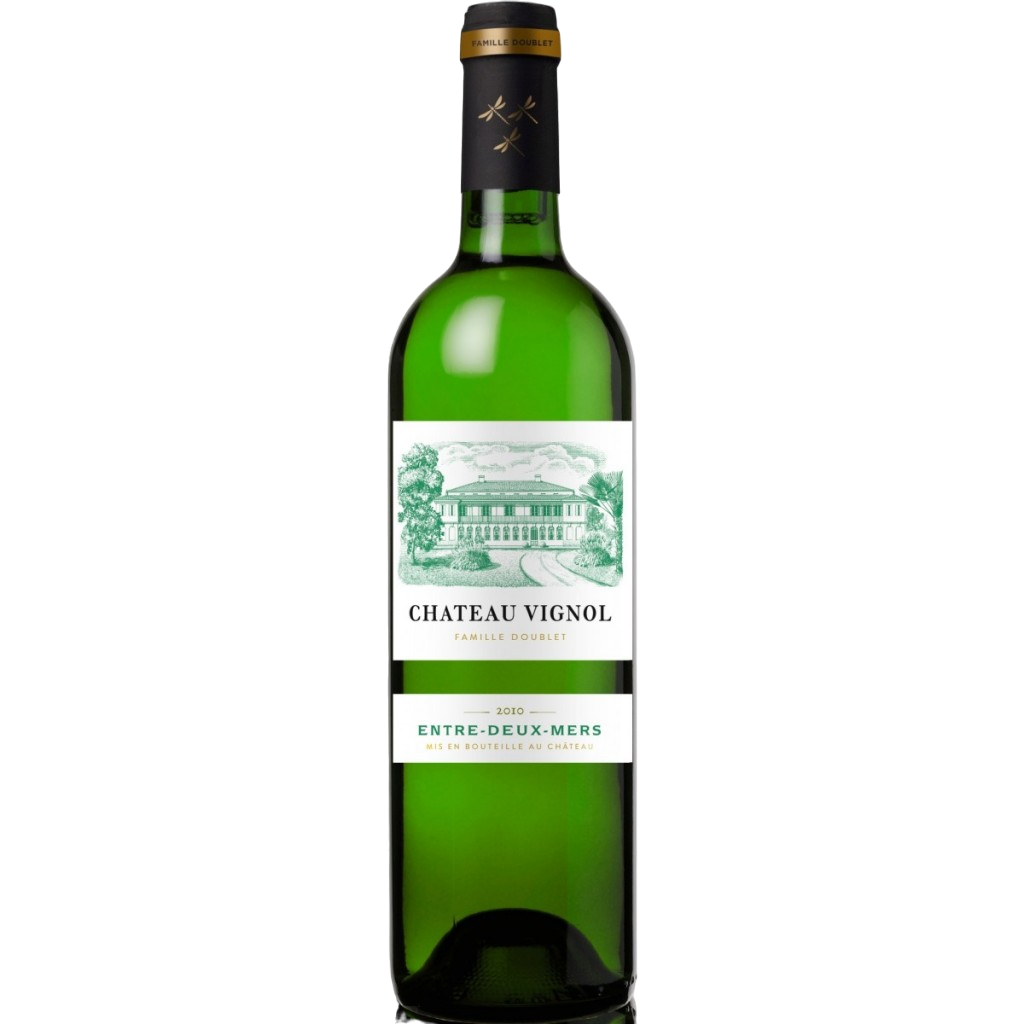Château Vignol Blanc uit Entre-Deux-Mers: frisse witte Bordeaux met citrus, witte bloemen en groene appel. Droog, mineraal. Heerlijk bij vis en salades.