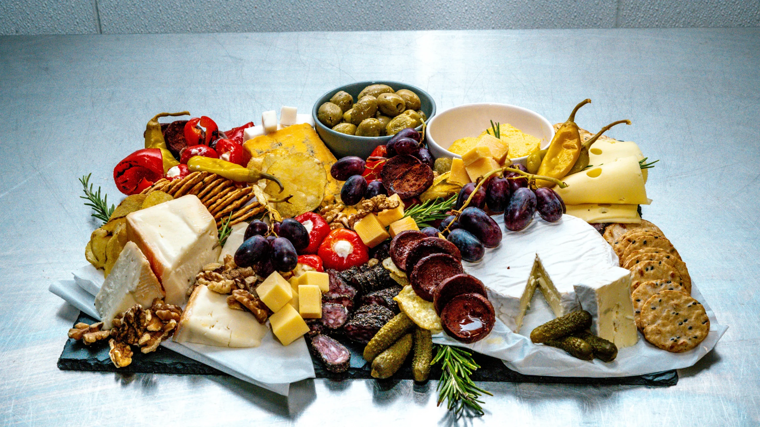 Royaal luxe kaas & worst plateau voor 10 personen met ambachtelijke kazen, fijne vleeswaren, brood, fruit, noten en dips. Perfect voor borrels, vergaderingen en feestjes.